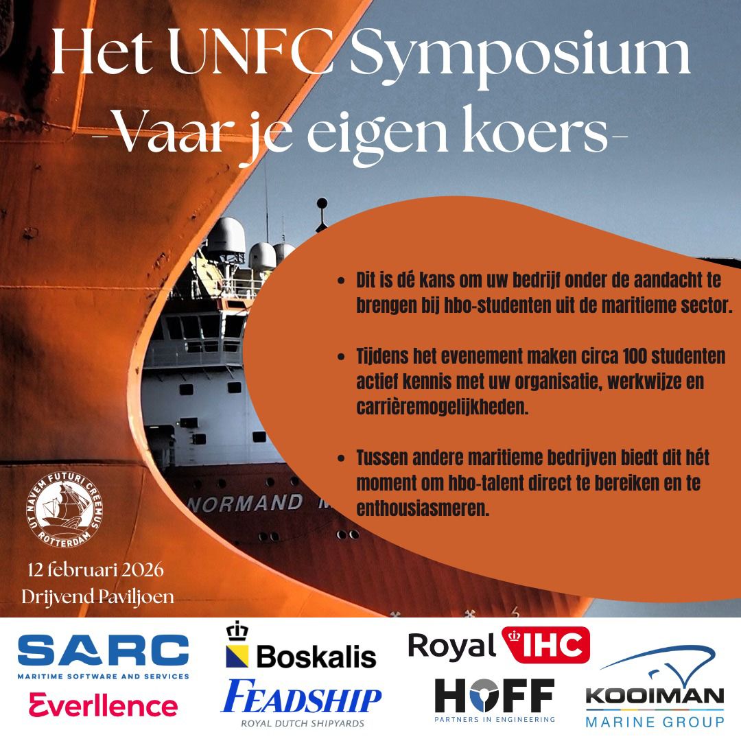 Het UNFC SYMPOSIUM Het UNFC-symposium van dit jaar staat voor de deur. De nieuwste editie van het grootste UNFC-evenement belooft opnieuw een dag vol inspiratie en kansen te worden. Tijdens deze editie organiseert UNFC samen met de symposiumcommissie een afwisselend programma op een externe locatie, zoals het Drijvend Paviljoen op de RDM-campus. Bedrijven uit de maritieme sector verzorgen lezingen over hun werk en ontwikkelingen in de branche. Denk aan onderwerpen als het ontwerpen van onderzeeërs of het duurzaam ontmantelen van schepen. Na de lezingen volgt de bedrijvenmarkt. Hier kunnen studenten laagdrempelig kennismaken met bedrijven, netwerken en zich oriënteren op [...]